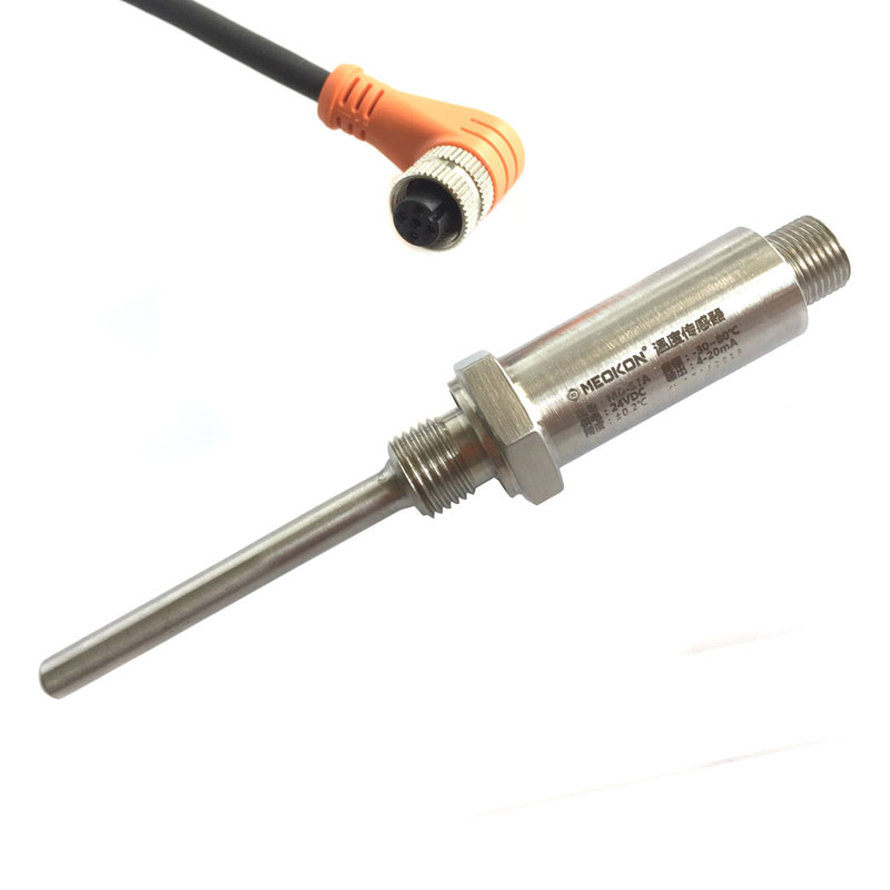 該溫度變送器產(chǎn)品的探頭及外殼采用316L不銹鋼,結(jié)構(gòu)采用激光焊接工藝,連接線采用IP65防水航插出線,極大的保證產(chǎn)品的長(zhǎng)期穩(wěn)定型和可靠性。